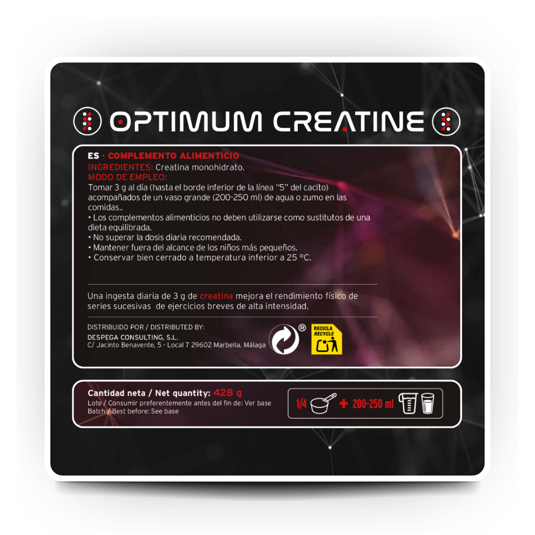 El envase de Optimum Creatine del Método Alpha 50 proporciona un suministro completo de al menos 2 meses, diseñado para realizar una fase de carga inicial seguida de una fase de mantenimiento (ver modo de empleo para más detalles).